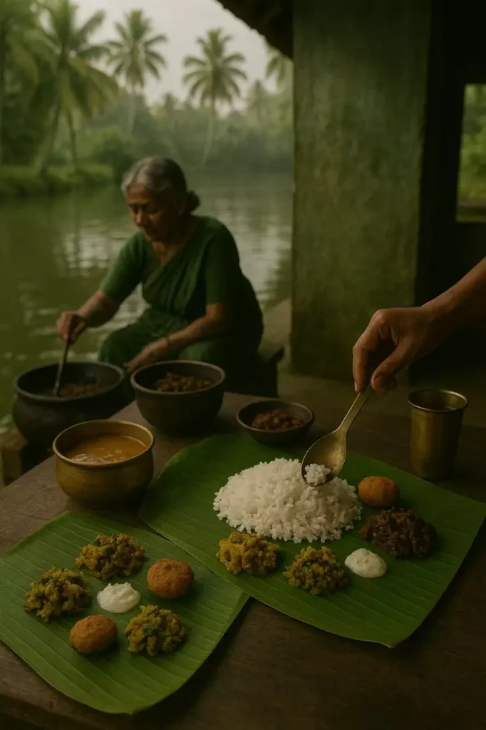 A Sadhya isn’t lunch – It’s a philosophy: 24+dishes, served on a banana leaf, eaten barefoot, in silence.